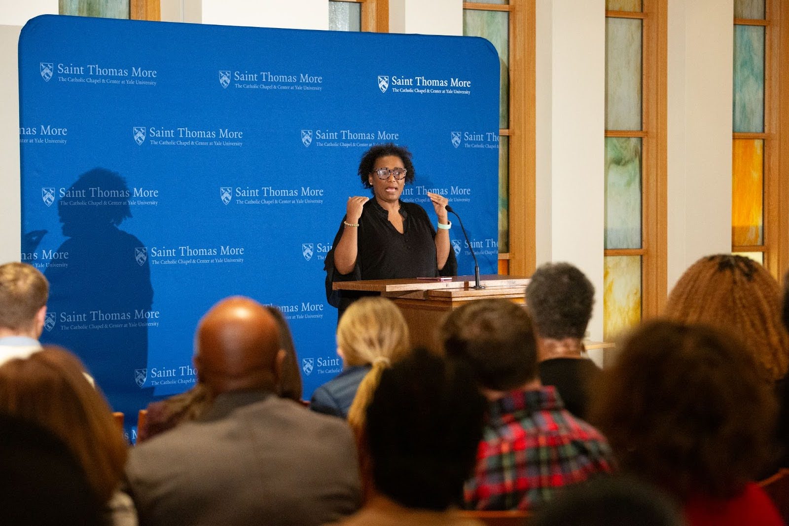 Gloria Purvis, a Catholic activist and writer, spoke at Yale’s St. Thomas More Catholic Chapel and Center advocating for an approach to racial justice informed by Catholic Social Teaching.